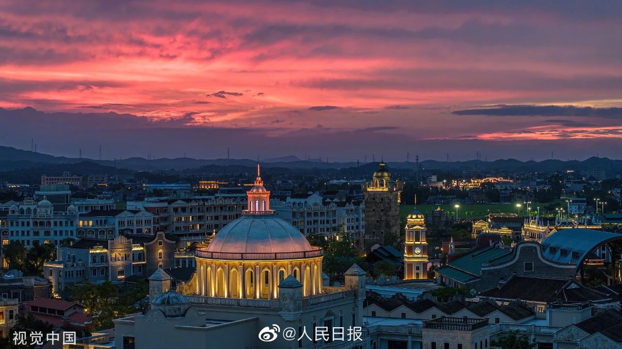 6月8日晚上,人民日报微博登出了开平赤坎华侨古镇上空的火烧云美景,在火烧云的映衬下,赤坎华侨古镇显得格外迷人。