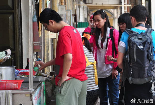 赤坎古镇让最让人们舒服的就是,你不会看到同里乌镇那种满街人头旅游热镇的骚劲,可以安静地看着街边的烧柴煮煲仔饭的师傅忙碌地转动瓦煲,不停地吆喝着招呼客人。当你走到一条小巷时,冷不丁会有老者从那西式阳台上探出头来,对你说这儿有三百多年历史了,好好看看吧。