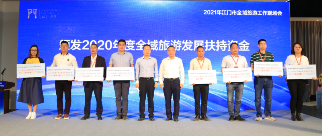 在随后的工作会议上,开平市就打造全域旅游驱动型乡村振兴发展模式进行经验交流,台山市介绍了深化创建国家全域旅游示范区情况,为各市(区)推动全域旅游工作提供了学习经验。会议还颁发了2020年度促进全域旅游发展扶持资金,发布了“江门旅游一键通”智慧旅游小程序,通报了2020年江门市全域旅游工作情况和2021年工作计划。