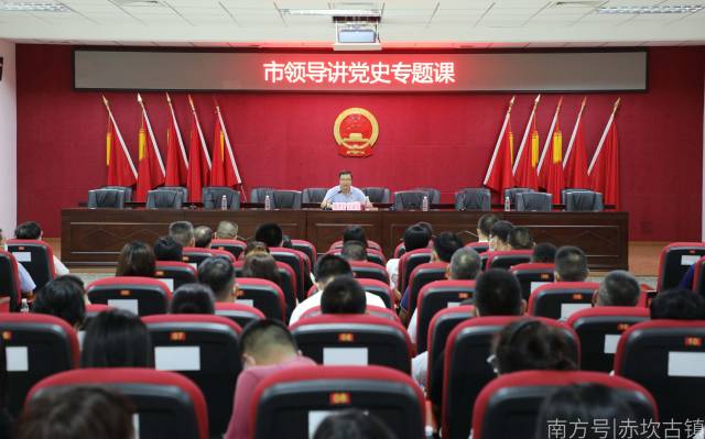 为进一步深化党史学习教育,引导广大党员干部知党史、感党恩、跟党走。5月14日下午,赤坎镇党(工)委中心组(扩大)理论学习——《中国共产党简史》在赤坎镇礼堂举行。开平市委常委、赤坎古镇党工委书记、管委会主任、赤坎镇党委书记陈杰文,对越自卫反击战一等功臣李楚恒,赤坎古镇管委会(赤坎镇)全体领导班子成员,赤坎镇机关党员干部、村(社区)书记、支委,镇七所八站、中心学校、派出所等有关同志等共200人参加学习会。