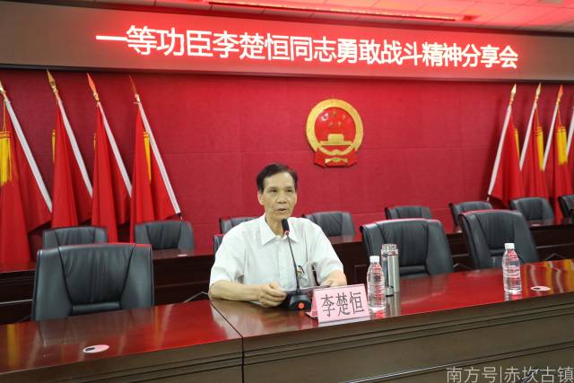 本次中心组(扩大)理论学习,还邀请到一等功臣李楚恒分享他在对越自卫反击战中勇敢战斗的先进事迹。通过身边鲜活生动的革命故事,又给大家上了一堂教育意义深刻的“党史课”。传承和发扬好先辈们的红色革命精神,立足本职工作,为助力赤坎复兴作出更大的贡献。