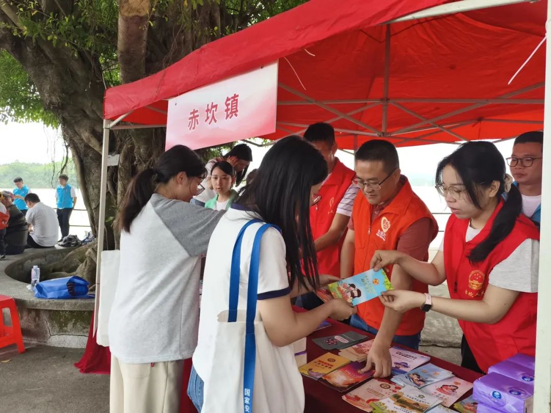 活动现场,赤坎镇党政和人大办、公共服务办、平安法治办、禁毒办、应急管理办、规划建设办、镇总工会、妇联、团委、赤坎司法所、消防队等多部门联合“开摊”宣传,赤坎镇人大代表也积极参与其中。