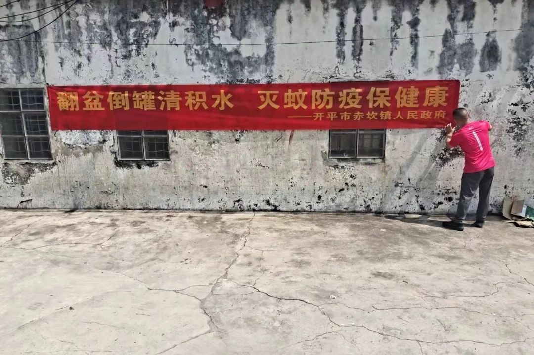 赤坎镇组织印发宣传海报400余张和横幅25余条、录制宣传音频发给村(社区)开展防控登革热、基孔肯雅热知识宣传积极引导群众全面清理卫生死角和积水环境,阻断疾病传播途径,形成群防群控的强大合力