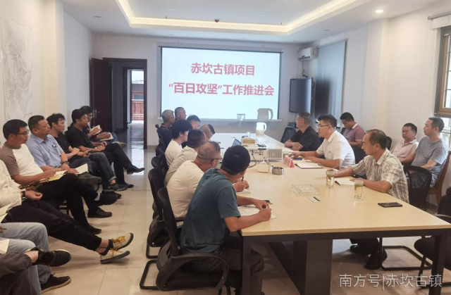 为推动项目加快建设,确保完成既定目标,7月21日下午,赤坎镇召开赤坎古镇项目“百日攻坚”工作推进会。赤坎镇党委副书记、镇长胡少波,赤坎古镇党工委委员陈永康,乌镇方代表,古镇办、工程参建单位代表等参加会议。