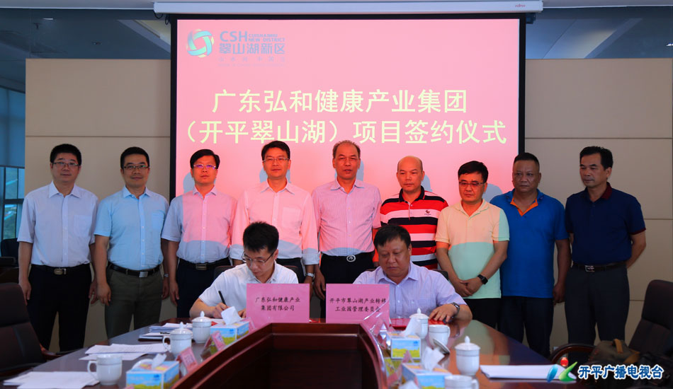 【开平广播电视台 余映意】6月30日下午,开平翠山湖科技园招商引资接连传来喜讯:总投资9亿元共3个项目的弘和健康产业集团、总投资5.5亿元的华美节能科技集团先后签约落户入园。开平市市长庞正华,市委常委、常务副市长何武健,弘和健康产业集团、华美节能科技集团相关高层领导,以及开平市府办、翠山湖管委会、市工业资产公司相关负责人出席签约仪式。