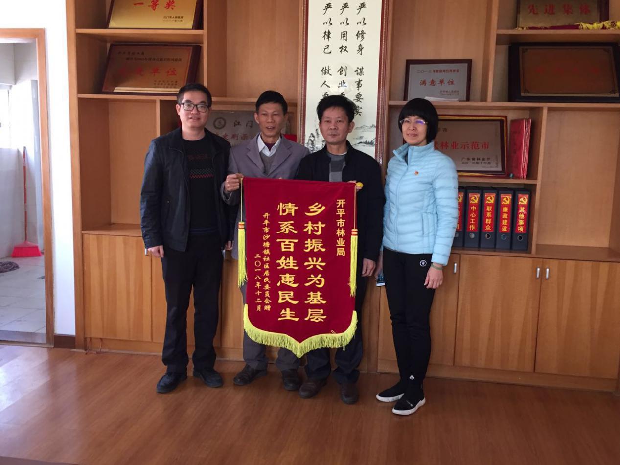 乡村振兴为基层、情系百姓惠民生 ——市林业局“送苗下乡”助力美丽乡村建设,沙塘镇社区居委会赠送锦旗表谢意 2019年1月24日上午,沙塘镇政府分管领导和农办及镇社区居委会有关同志一行3人将一面印有“乡村振兴为基层、情系百姓惠民生”字样的鲜红锦旗送到我局,对我局开展“送苗下乡”活动,大力支持该镇建设生态居宜乡村表示由衷的感谢。我局冯岸良副局长和李雪清纪检组长接收了锦旗。 冯岸良副局长表示,收到基层赠送的锦旗,林业部门倍感到自身的责任,也将激发全体林业干部职工以高度的政治责任感和务实的工作作风,极探索绿色发展的长效机制,着力改善全市生态宜居环境,为扎实推进新一轮绿化开平作出更大贡献。同时希望村民们加强苗木日常管护,确保植树成效,林业部门将提供技术指导,共同巩固绿化美化建设成果。