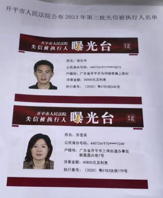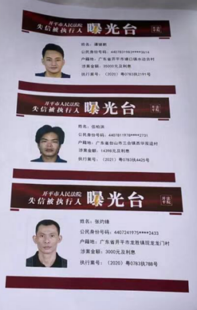为切实维护债权人的合法权益和法律的权威,促进社会信用机制的建立,4月,开平市人民法院通过法院机关外墙的公告栏,公告了失信被执行人名单5人次,不断加大对失信被执行人的震慑力度,营造“让失信者寸步难行”的良好社会氛围。