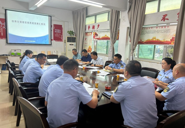 为完善交通运输领域信用体系建设,扎实推进开平市交通运输局的 “信用交通”建设工作,全面提升开平市交通运输行业信用建设工作水平,助力“信用交通”高质量发展,开平市交通运输局在交通运输服务中心三楼会议室召开信用交通建设高质量发展汇报会。