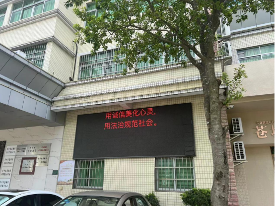 活动通过党群服务中心前LED宣传屏滚动播放关于诚信教育的宣传口号,让更多群众了解并参与到诚信宣传的活动中来。