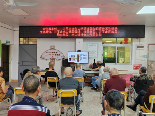 切实提升老年人防骗识骗能力,近日,开平市民政局指导开平市水口镇颐养院、贵达养老院开展“银龄守护”防诈骗专题宣传教育活动,通过观看警示教育视频、剖析典型案例等形式,帮助老年人识别诈骗套路,守住养老钱。