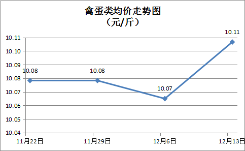 家禽类商品价格小幅上涨。本周所监测的6种禽蛋类商品均价为10.11元/斤,周环比上涨0.41%。其中:白条鸡、白条鸭零售均价分别为每斤18.94元、14.26元,环比分别上涨1.12%、上涨0.85%;红壳鸡蛋、鸭蛋零售均价分别为每斤6.04元、6.92元,环比分别下降0.66%、持平。