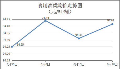 食用油类商品价格稳中微涨。本周所监测的9种食用油(5L装)商品价格波动情况为3涨1跌5平,均价为94. 41元/桶,环比上涨0.11%。金龙鱼花生油、金龙鱼调和油5L装零售均价分别为每桶106.56元、68.86元,环比分别上涨0.84%、持平。