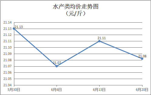 水产类商品价格小幅波动。本周所监测的10种水产商品价格波动情况为1涨4跌5平,综合均价为21.08元/斤,环比下降0.11%。其中:草鱼、鳙鱼、罗非鱼、基围虾零售均价分别为每斤11.57元、10.71元、8.70元、38.08元,环比分别下降0.60%、上涨1.23%、持平、下降0.05%。