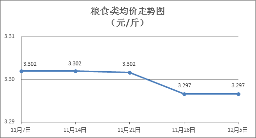 粮食类商品价格基本平稳。本周所监测的6种粮食商品价格均持平,综合零售均价为3.297元/斤。其中:晚籼米、丝苗米、标准粉零售均价分别为每斤3.32元、3.52元、3.11元,环比均持平。