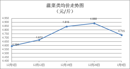 据本市21家农贸市场监测数据显示, 2022年12月27日至1月9日(下同)市场上各类“菜篮子”商品供应充足,所监测的7大类“菜篮子”商品价格2涨5跌。其中:粮油类、水果类商品价格稳中微涨,肉禽蛋类、蔬菜类、水产类商品价格有所微降。
