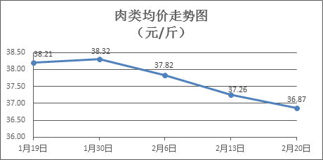肉类商品价格略有下降。本周所监测的8种肉类商品价格波动情况为2涨6跌,综合零售均价为36.87元/斤,环比下降1.04%。其中:排骨、精瘦肉、有皮上肉、牛肉零售均价分别为每斤32.39元、21.81元、17.93元、54.73元,环比分别下降1.96%、下降3.54%、下降3.08%、上涨0.04%。