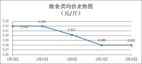 粮食类商品价格平稳。本周所监测的6种粮食商品价格平稳,综合零售均价为3. 280元/斤,环比持平。其中:晚籼米、丝苗米、富强粉零售均价分别为每斤3.26元、3.42元、3.36元,环比均持平。