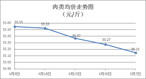 肉类商品价格小幅下调。本周所监测的8种肉类商品价格波动情况为1涨6跌1平,综合零售均价为35.15元/斤,环比下降0.35%。其中:排骨、精瘦肉、有皮上肉、牛肉、带骨羊肉零售均价分别为每斤29.21元、19.18元、14.49元、54.62元、46.33元,环比分别下降1.42%、下降1.44%、下降0.55%、下降0.05%、下降0.19%。