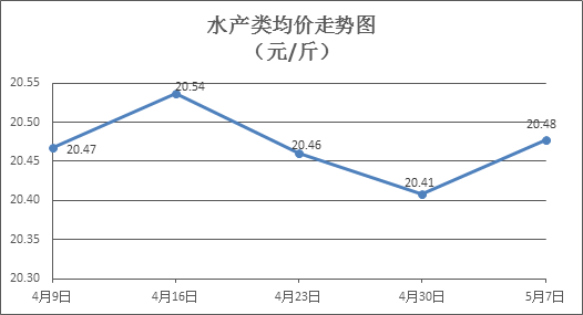 水产类商品价格窄幅盘整。本周所监测的10种水产商品价格波动情况为4涨5跌1平,综合均价为20.48元/斤,环比上涨0.34%。其中:草鱼、鲫鱼、鳙鱼、罗非鱼、海虾零售均价分别为每斤10.87元、13.67元、10.00元、8.35元、51.00元,环比分别下降0.91%、下降0.51%、下降0.60%、上涨0.48%、上涨1.33%。