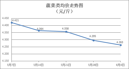 蔬菜类商品价格升降互现。上周所监测的32 种蔬菜商品价格波动情况为16涨15跌1平,综合零售均价为4.263元/斤,环比下降0.74%。其中:涨幅居前的品种包括西洋菜、花菜、菠菜,零售均价分别为每斤4.06元、4.75元、5.36元,环比分别上涨5.73%、3.94%、3.08%;跌幅居前的品种包括丝瓜、茄子、白苋菜,零售均价分别为每斤4.12元、3.96元、3.75元,环比分别下降9.25%、7.04%、6.25%。