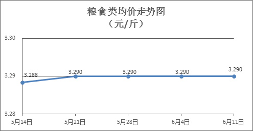 粮食类商品价格基本平稳。上周所监测的6种粮食商品价格环比均持平,综合零售均价为3.290元/斤。其中:丝苗米、油粘米、标准粉零售均价分别为每斤3.46元、3.42元、3.14元,环比均持平。