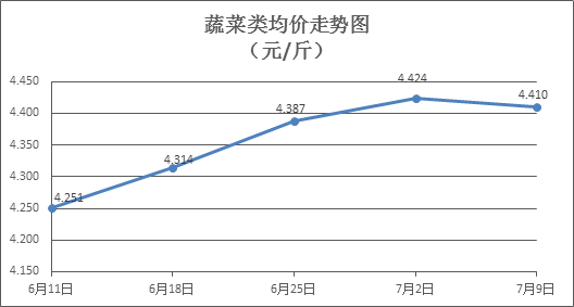 蔬菜类商品价格总体略降。上周所监测的32 种蔬菜商品价格波动情况为13涨19跌,综合零售均价为4.410元/斤,环比下降0.32%。其中:涨幅居前的品种包括白萝卜、生姜、青皮冬瓜,零售均价分别为每斤2.81元、7.26元、2.60元,环比分别上涨5.56%、2.54%、2.36%;跌幅居前的品种包括花菜、青豆角、苦瓜,零售均价分别为每斤5.14元、4.95元、4.20元,环比分别下降4.10%、3.51%、3.45%。