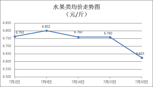 水果类商品价格小幅波动。上周所监测的6种水果商品价格波动情况为3涨2跌1平,综合零售均价为6.625元/斤,下降2.00%。其中苹果、葡萄、梨零售均价分别为每斤7.44元、13.40元、6.67元,环比分别上涨0.68%、下降6.03%、上涨0.45%。