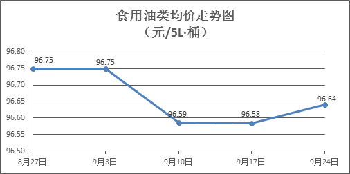 食用油类商品价格稳中微升。上周所监测的9种食用油(5L装)商品价格波动情况为5涨2跌2平,综合零售均价为96.64元/桶,环比上涨0.06%。其中:鲁花花生油、金龙鱼调和油零售均价分别为每桶156.92元、70.89元,环比分别上涨0.01%、持平。