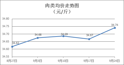 肉类商品价格微幅上涨。上周所监测的8种肉类商品价格波动情况为7涨1跌,综合零售均价为34.74元/斤,环比上涨0.22%。其中:排骨、精瘦肉、有皮上肉、牛肉、带骨羊肉零售均价分别为每斤29.92元、19.06元、14.50元、54.09元、44.82元,环比分别上涨0.30%、下降0.31%、上涨0.28%、上涨0.19%、上涨0.11%。