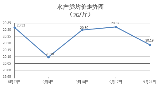 水产类商品价格略降为主。上周所监测的10种水产商品价格波动情况为3涨7跌,综合均价为20.19元/斤,环比下降0.65%。其中:草鱼、鲢鱼、鲫鱼、罗非鱼、基围虾零售均价分别为每斤11.11元、9.58元、14.32元、8.55元、35.46元,环比分别上涨0.27%、下降0.73%、下降0.76%、上涨1.91%、下降0.56%。