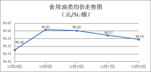 食用油类商品价格微幅波动。上周所监测的9种食用油(5L装)商品价格波动情况为2涨3跌4平,综合零售均价为96.55元/桶,环比下降0.03%。其中:鲁花花生油、大豆油零售均价分别为每桶157.04元、60.29元,环比分别下降0.06%、上涨0.08%。
