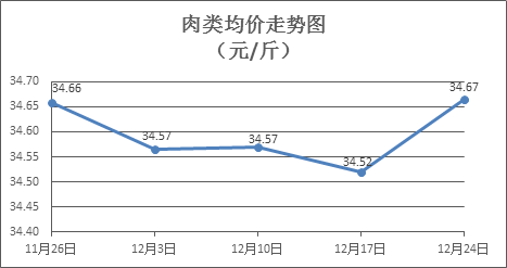 牛羊类商品价格小幅上涨。上周所监测的8种肉类商品价格波动情况为4涨2跌2平,综合零售均价为34.67元/斤,环比上涨0.42%。其中:排骨、精瘦肉、有皮上肉、牛肉、带骨羊肉零售均价分别为每斤28.95元、18.47元、14.39元、54.47元、44.33元,环比分别下降0.17%、下降0.11%、上涨0.14%、上涨0.04%、上涨2.64%。