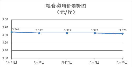 粮食类商品价格稳中有降。上周所监测的6种粮食类商品价格波动情况为2跌4平,综合零售均价为3.320元/斤,环比下降0.20%。其中:丝苗米、油粘米、标准粉零售均价分别为每斤3.52元、3.50元、3.17元,环比分别下降0.85%、持平、持平。