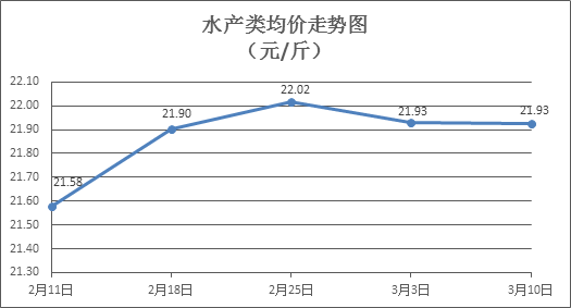水产类商品价格窄幅波动。上周所监测的10种水产商品价格波动情况为4涨6跌,综合均价为21.93元/斤,环比下降0.02%。其中:草鱼、鲫鱼、罗非鱼、基围虾零售均价分别为每斤11.49元、14.32元、8.92元、35.03元,环比分别下降0.78%、上涨0.28%、下降0.34%、下降1.99%。