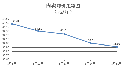 肉类商品价格整体微降。所监测的8种肉类商品价格波动情况为6跌2平,综合零售均价为每斤33.92元,环比下降0.27%。其中:排骨、精瘦肉、有皮上肉、牛肉、带骨羊肉零售均价分别为每斤29.40元、18.41元、14.54元、52.64元、44.20元,环比分别下降0.54%、下降0.11%、下降0.27%、下降0.40%、下降0.41%。