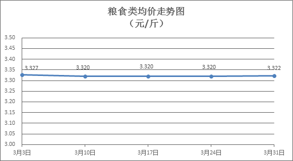 粮食类商品价格基本平稳。所监测的6种粮食类商品价格波动情况为1涨1跌4平,综合零售均价为每斤3.322元,环比上涨0.05%。其中:丝苗米、珍珠米、标准粉零售均价分别为每斤3.54元、3.08元、3.17元,环比分别上涨0.57%、下降0.32%、持平。