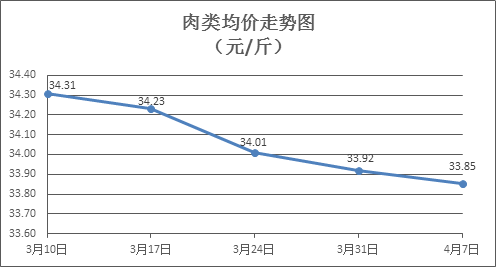 据本市21家农贸市场监测数据显示,上周(4月1日至4月7日,下同)市场上各类“菜篮子”商品供应充足,所监测的7大类“菜篮子”商品价格均下跌。其中:粮油类商品价格稳中微降,肉禽蛋类、蔬果类、水产类商品价格总体略降。近期新鲜蔬果大量上市,价格略有下降,预计节后消费转淡,肉菜商品价格走弱。