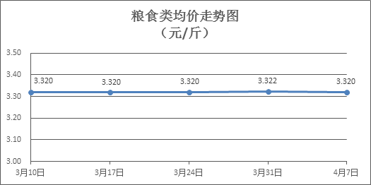 粮食类商品价格基本平稳。所监测的6种粮食类商品价格波动情况为1跌5平,综合零售均价为每斤3.320元,环比下降0.05%。其中:晚籼米、丝苗米、标准粉零售均价分别为3.27元、每斤3.54元、3.17元,环比分别下降0.30%、持平、持平。