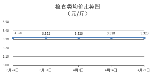 粮食类商品价格稳中微涨。所监测的6种粮食类商品价格波动情况为2涨1跌3平,零售均价为每斤3.320元,环比上涨0.05%。其中:晚籼米、丝苗米、油粘米零售均价分别为3.25元、每斤3.55元、3.51元,环比分别下降0.31%、上涨0.28%、上涨0.29%。