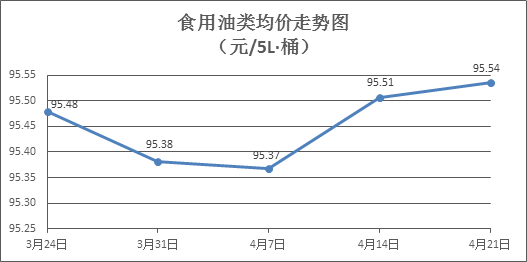 食用油类价格微幅盘升。所监测的9种食用油(5L装)商品价格波动情况为4涨4跌1平,综合零售均价为每桶95.54元,环比上涨0.03%。其中:鲁花花生油、金龙油调和油零售均价分别为每桶154.26元、71.55元,环比分别上涨0.12%、下降0.06%。