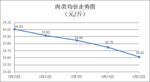 肉类商品价格总体微降。所监测的8种肉类商品价格波动情况为1涨7跌,综合零售均价为每斤33.62元,环比下降0.41%。其中:排骨、精瘦肉、有皮上肉、牛肉、带骨羊肉零售均价分别为每斤29.15元、18.19元、14.29元、52.02元、43.63元,环比分别下降0.24%、下降0.05%、下降1.04%、下降0.71%、下降0.52%。