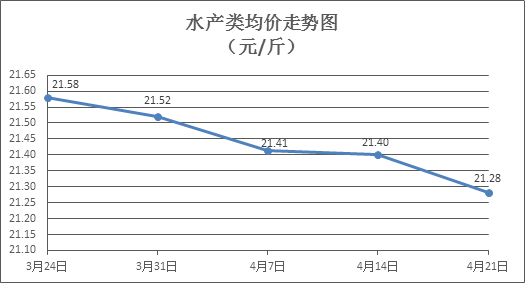 水产类商品价格以降为主。所监测的10种水产商品价格波动情况为3涨7跌,综合均价为每斤21.28元,环比下降0.56%。其中:草鱼、鲫鱼、罗非鱼、基围虾零售均价分别为每斤11.07元、14.19元、8.75元、33.14元,环比分别下降1.25%、上涨0.21%、下降0.57%、下降1.54%。