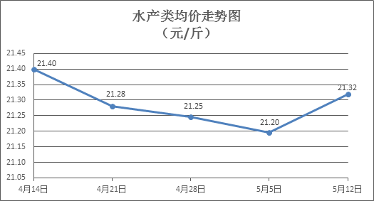 水产类商品价格有所上涨。所监测的10种水产商品价格波动情况为6涨1跌3平,综合均价为每斤21.32元,环比上涨0.59%。其中:草鱼、鲫鱼、罗非鱼、基围虾零售均价分别为每斤11.21元、14.25元、8.89元、32.90元,环比分别上涨0.27%、持平、上涨1.72%、上涨0.52%。
