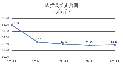 肉类商品价格微幅盘整。所监测的8种肉类商品价格波动情况为4涨4跌,综合零售均价为每斤32.38元,环比上涨0.04%。其中:排骨、精瘦肉、牛肉、带骨羊肉零售均价分别为每斤29.67元、18.43元、48.38元、42.57元,环比分别上涨0.85%、上涨0.49%、下降0.06%、下降0.61%。