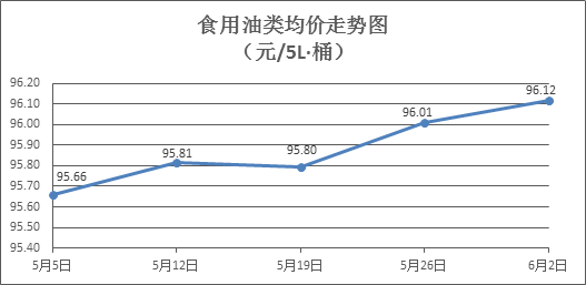 食用油类商品价格总体微涨。所监测的9种食用油(5L装)商品价格波动情况为4涨2跌3平,综合零售均价为每桶96.12元,环比上涨0.11%。其中:菜籽油、玉米油零售均价分别为每桶73.38元、76.85元,环比分别上涨0.22%、上涨0.52%。