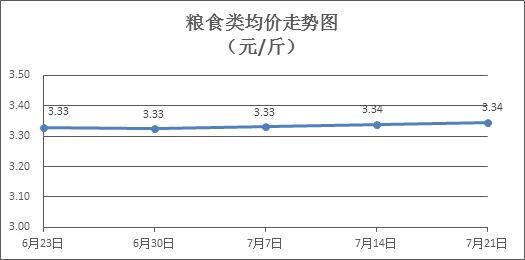 粮食类商品价格稳中微涨。所监测的6种粮食类商品价格波动情况为3涨3平,零售均价为每斤3.34元,环比上涨0.20%。其中:晚籼米、珍珠米、标准粉零售均价分别为每斤3.30元、3.11元、3.17元,环比分别上涨0.30%、上涨0.32%、持平。