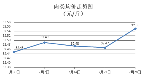 肉类商品价格小幅上涨。所监测的8种肉类商品价格波动情况为5涨3跌,综合零售均价为每斤32.55元,环比上涨0.26%。其中:排骨、精瘦肉、牛肉、带骨羊肉零售均价分别为每斤31.49元、19.15元、45.88元、43.41元,环比分别上涨1.65%、上涨1.97%、下降0.63%、下降0.55%。