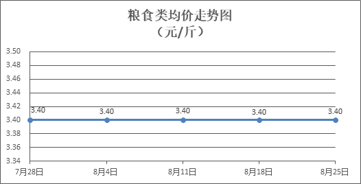 粮食类商品价格基本平稳。所监测的4种粮食类商品价格均持平,零售均价为每斤3.40元。其中:丝苗米、富强粉零售均价分别为每斤3.60元、3.37元,环比均持平。