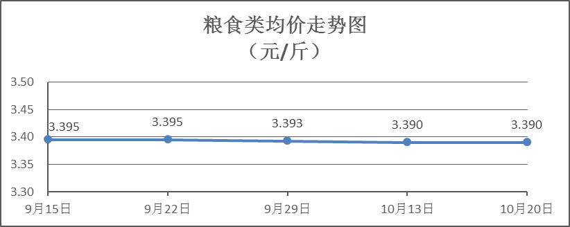粮食类商品价格保持稳定。所监测的4种粮食类商品价格均持平,零售均价为每斤3.390元。其中:丝苗米、富强粉零售均价分别为每斤3.57元、3.36元,环比均持平。