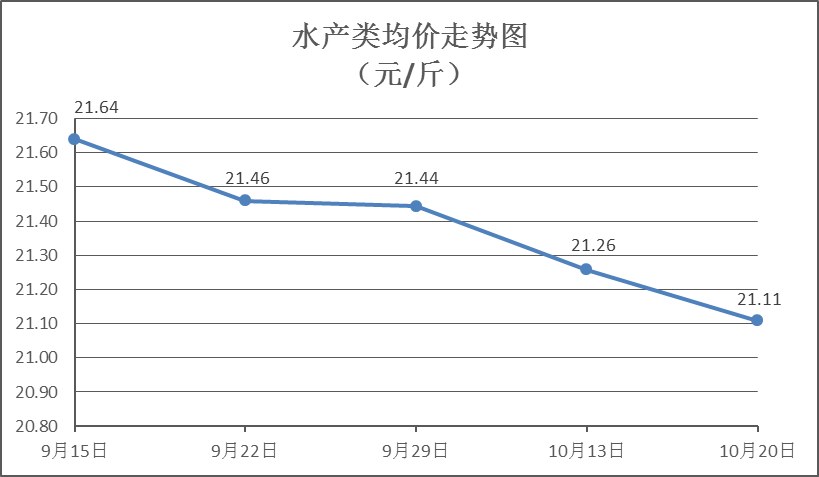 水产类商品价格略有下降。所监测的9种水产商品价格波动情况为3涨6跌,综合均价为每斤21.11元,环比下降0.70%。其中:草鱼、鲫鱼、罗非鱼、基围虾零售均价分别为每斤11.06元、13.87元、9.00元、30.49元,环比分别上涨0.18%、下降0.14%、下降0.44%、上涨0.10%。